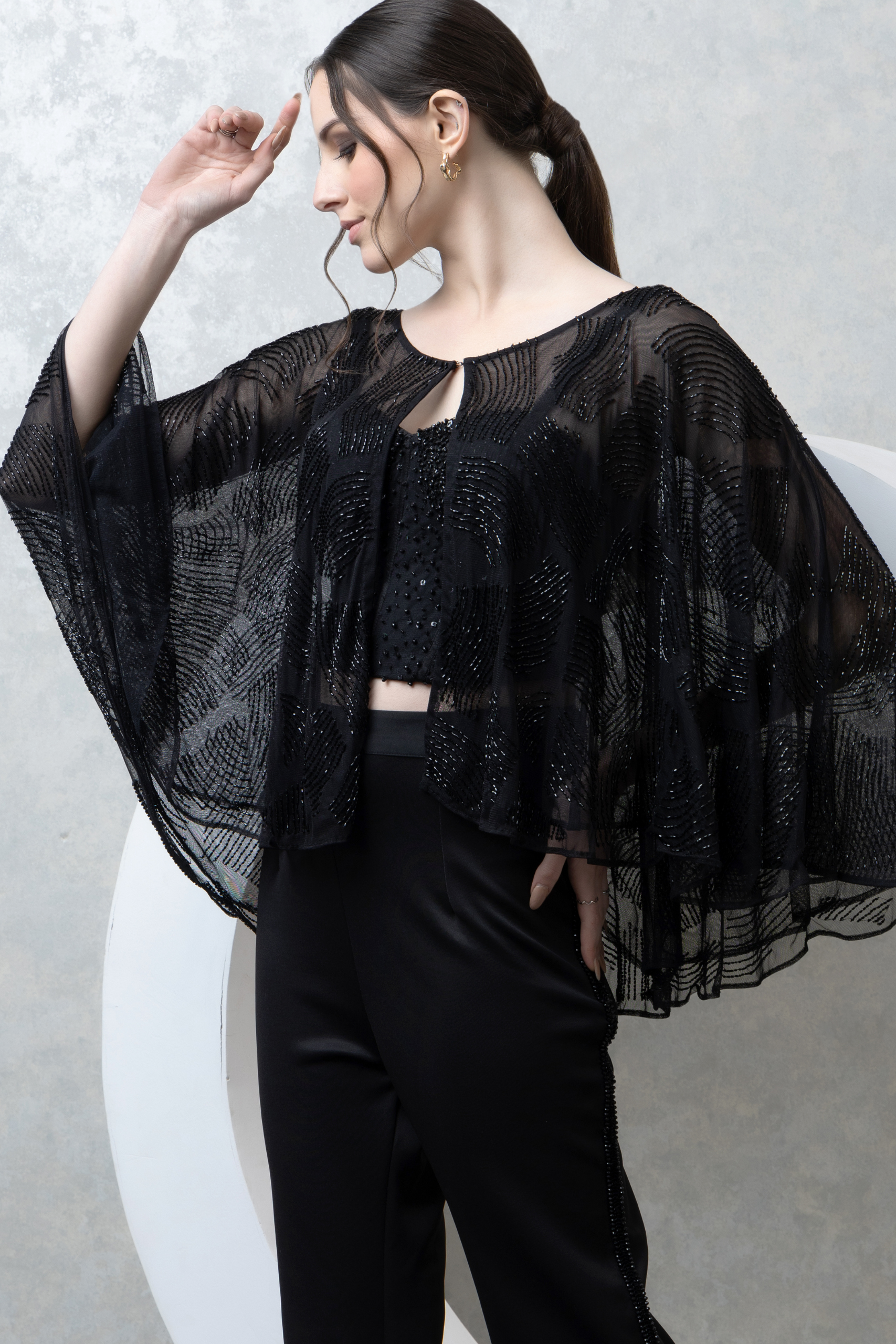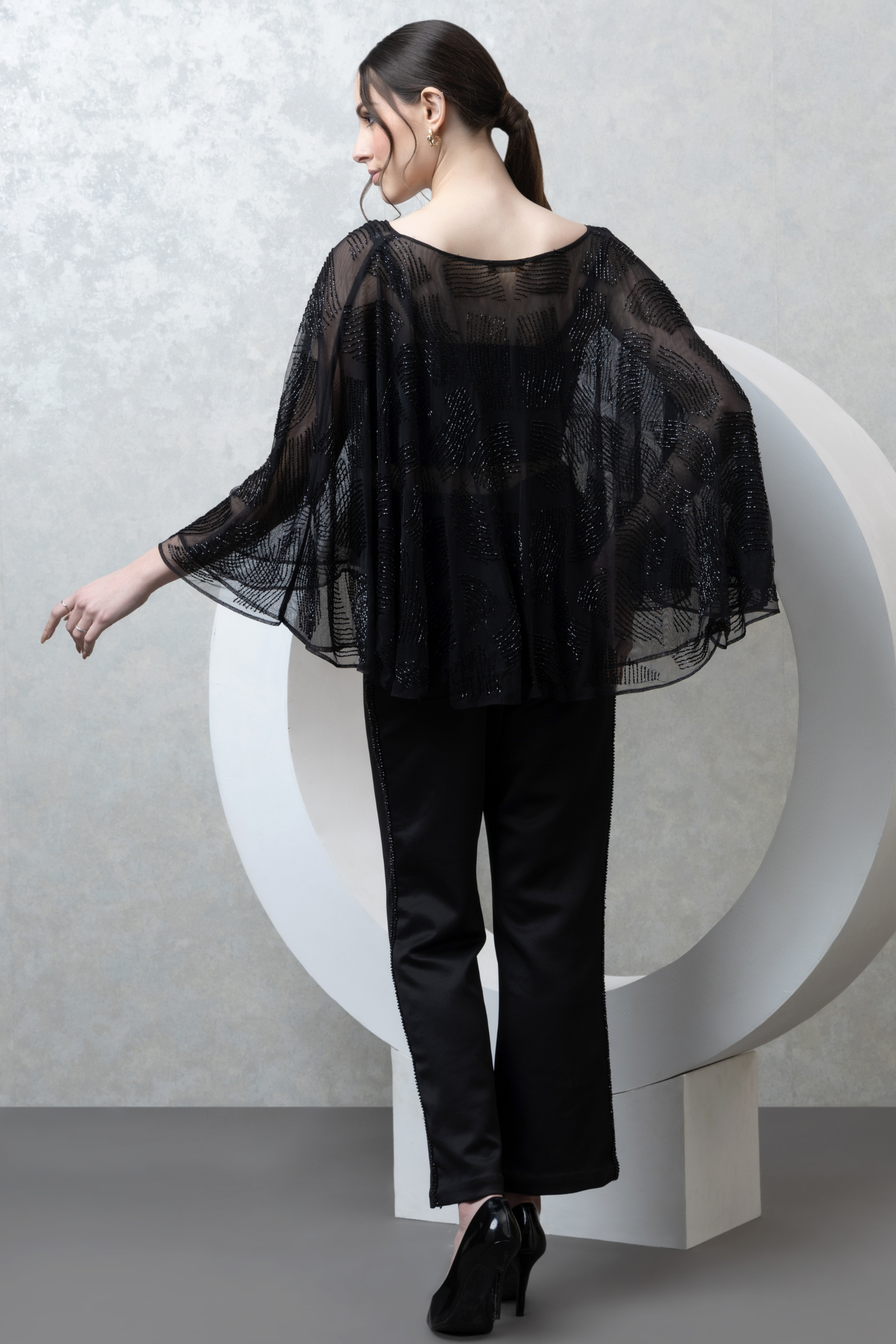 Black Sheer Cape Co-ord Set