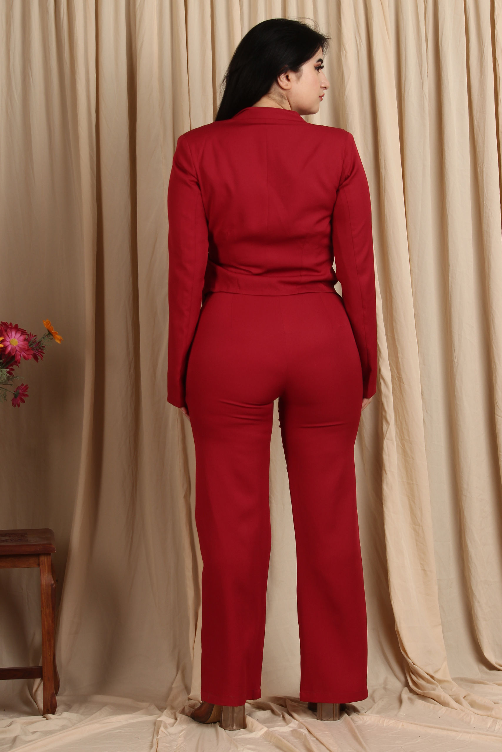 Make a bold statement in this striking Red Embellished Evening Co-Ord Set. Features intricate sequin embroidery cascading across the blazer. Tailored fit flatters your curves while exuding confidence. Paired with matching wide-leg trousers for a sleek silhouette. Perfect for cocktail evenings, receptions, or festive parties.